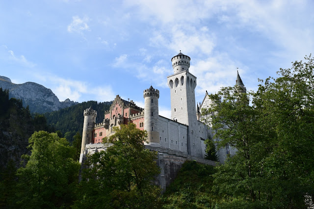 After the first castle, we had over an hour before our tour started for the next one. We grabbed some breakfast and began the hike up to Neuschwanstein. There are signs all around that say that those who have trouble walking should be weary, but I figured it wouldn't be that bad. Wrong. This was definitely an uphill walk. I mean, I was fine, but I may or may not have broken a sweat getting up there. They have benches along the way for people to rest in and they looked pretty appealing about halfway up. They do have buses and horse drawn carriages that will take you most of the way up, but you still have to walk from the drop off point to the castle.