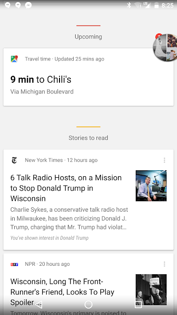 Now that I've put Chili's in my map, Google tells me how far I am from it at all times. I guess it's useful information! Also, I clicked on ONE article about The Donald and now it's showing me all sorts of articles about him because I've "shown interest in Donald Trump." I guess I need some entertainment and something to laugh about while I'm here.